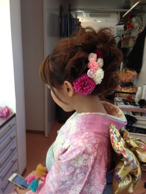 七五三のお支度は、ミカレデイでは、桃割れを結い上げます!